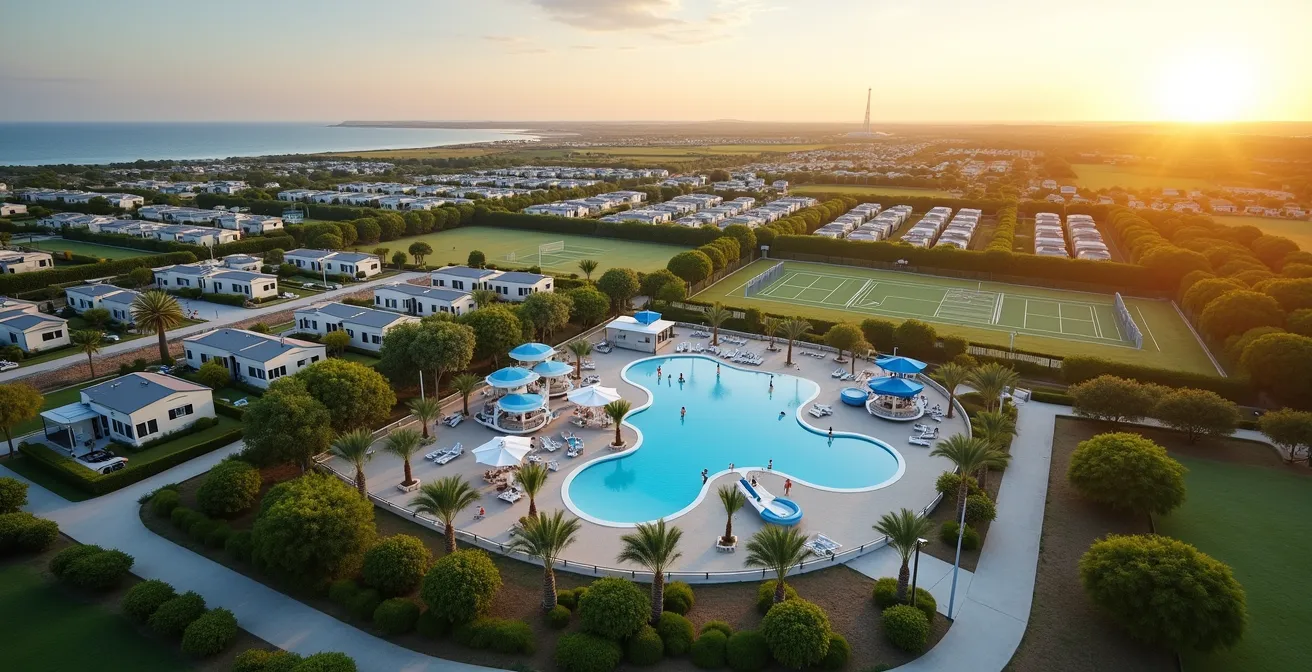 Pour une famille active, la promesse d’un camping-village doté d’un parc aquatique XXL et de multiples terrains de sport semble être la formule magique pour des vacances réussies. L’idée de pouvoir passer du court de tennis à la piscine à vagues, puis à la salle de musculation sans jamais quitter le site est séduisante. Beaucoup d’articles se contentent de lister les activités disponibles, vantant un « plaisir infini pour tous les âges ». C’est une vision juste, mais incomplète. En tant que directeur technique, je peux vous assurer que la véritable valeur de ces méga-structures ne réside pas seulement dans les attractions visibles.